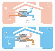 室內(nèi)排風和新風分別呈正交叉方式流經(jīng)換熱器芯體時,由于氣流分隔板兩側(cè)氣流存在著溫差和蒸汽分壓差,兩股氣流通過分隔板時呈現(xiàn)傳熱傳質(zhì)現(xiàn)象,引起全熱交換過程。夏季運行時,新風從空調(diào)排風獲得冷量,使溫度降低,同時被...